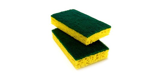 Apply mild dish soap to an already wet Heavy Duty Scrub Sponge.